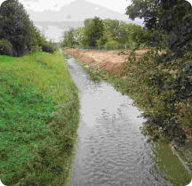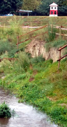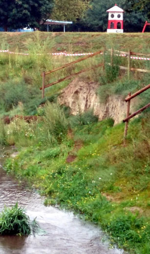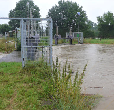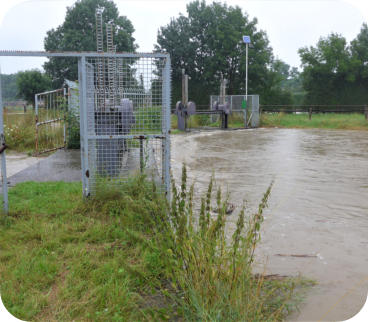Überflutetes Spaltwerk am 14.7. um 10 Uhr