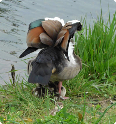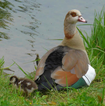 erster Nachwuchs bei den Nilgänsen (5Küken)